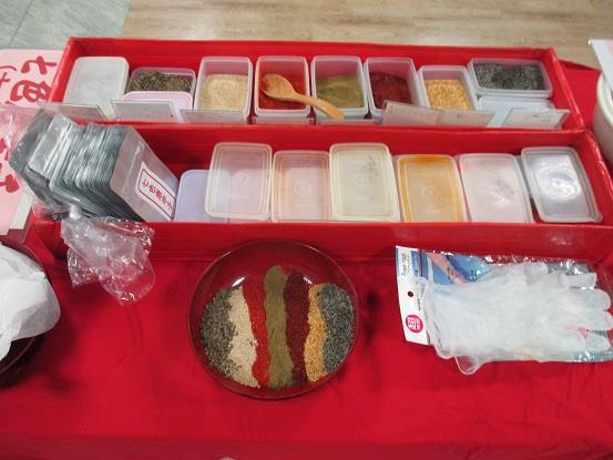 黒ごま・陳皮(みかんの皮の粉末)・焼き唐辛子・粉サンショウ・赤唐辛子・ケシの実・麻の実